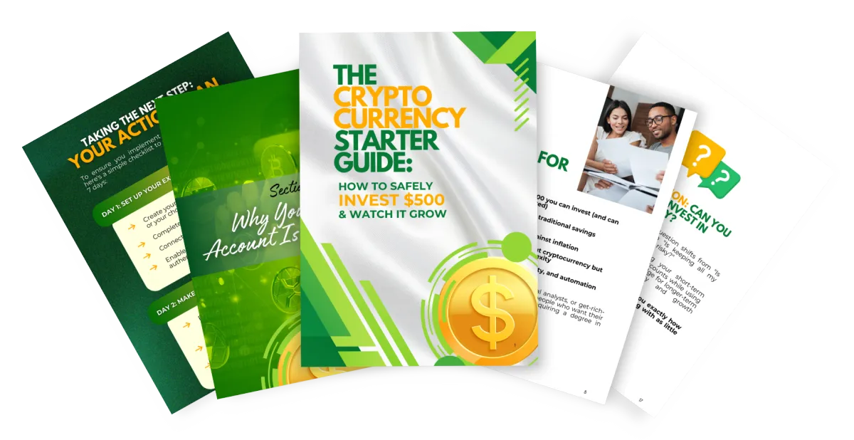 You’ll get the complete Cryptocurrency Starter Guide, packed with everything you need to begin confidently. Inside, you’ll discover why traditional banking is holding you back, how to enter the crypto market safely with Bitcoin and Ethereum, how to secure your assets, automate your investments, and manage your portfolio for long-term growth. The guide walks you through a proven step-by-step system that’s helped thousands grow their portfolios by 30–50% in their first year.